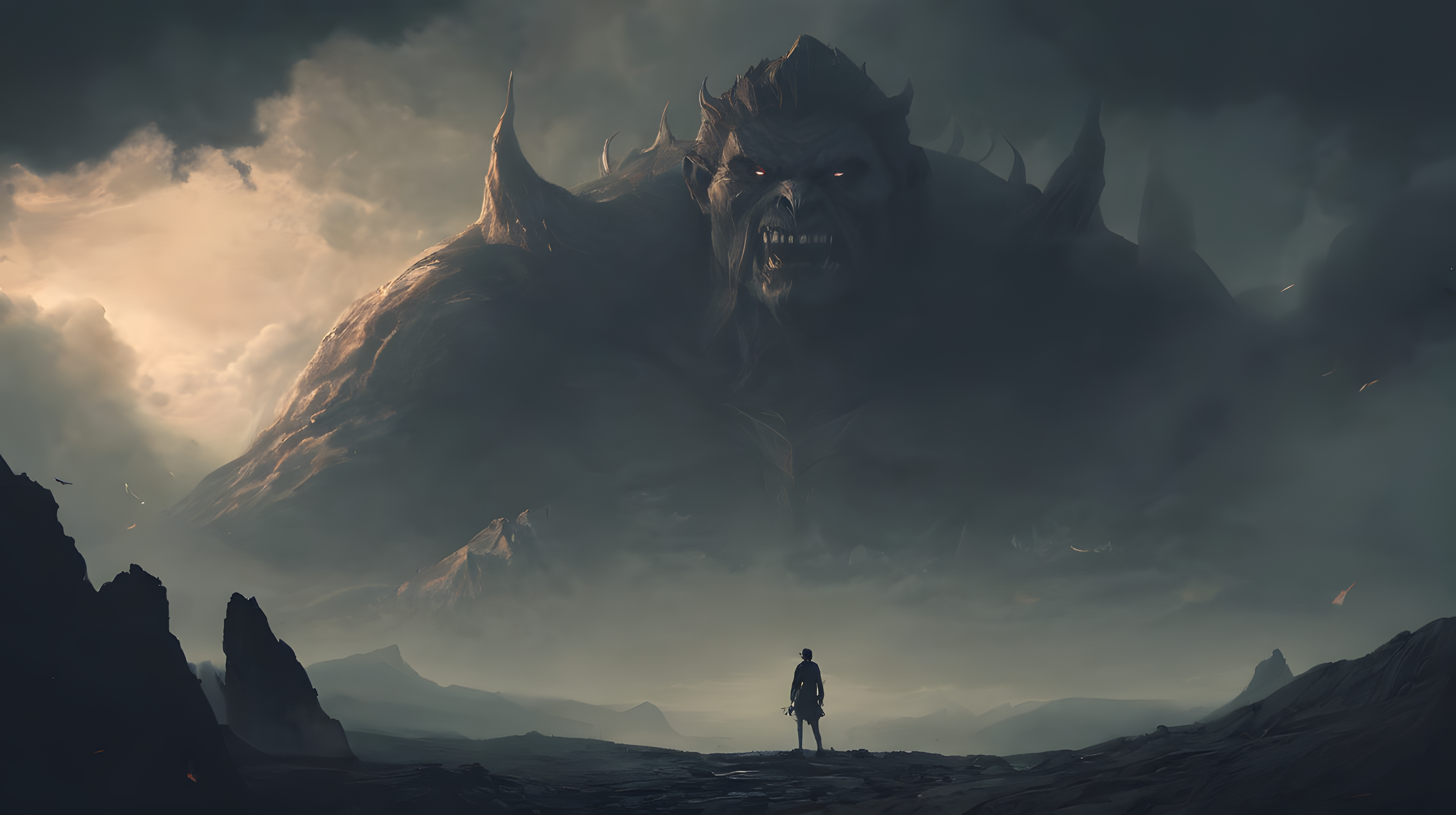 Download this free 4K wallpaper featuring a towering and formidable titan, whose immense figure dominates the landscape with awe-inspiring presence.