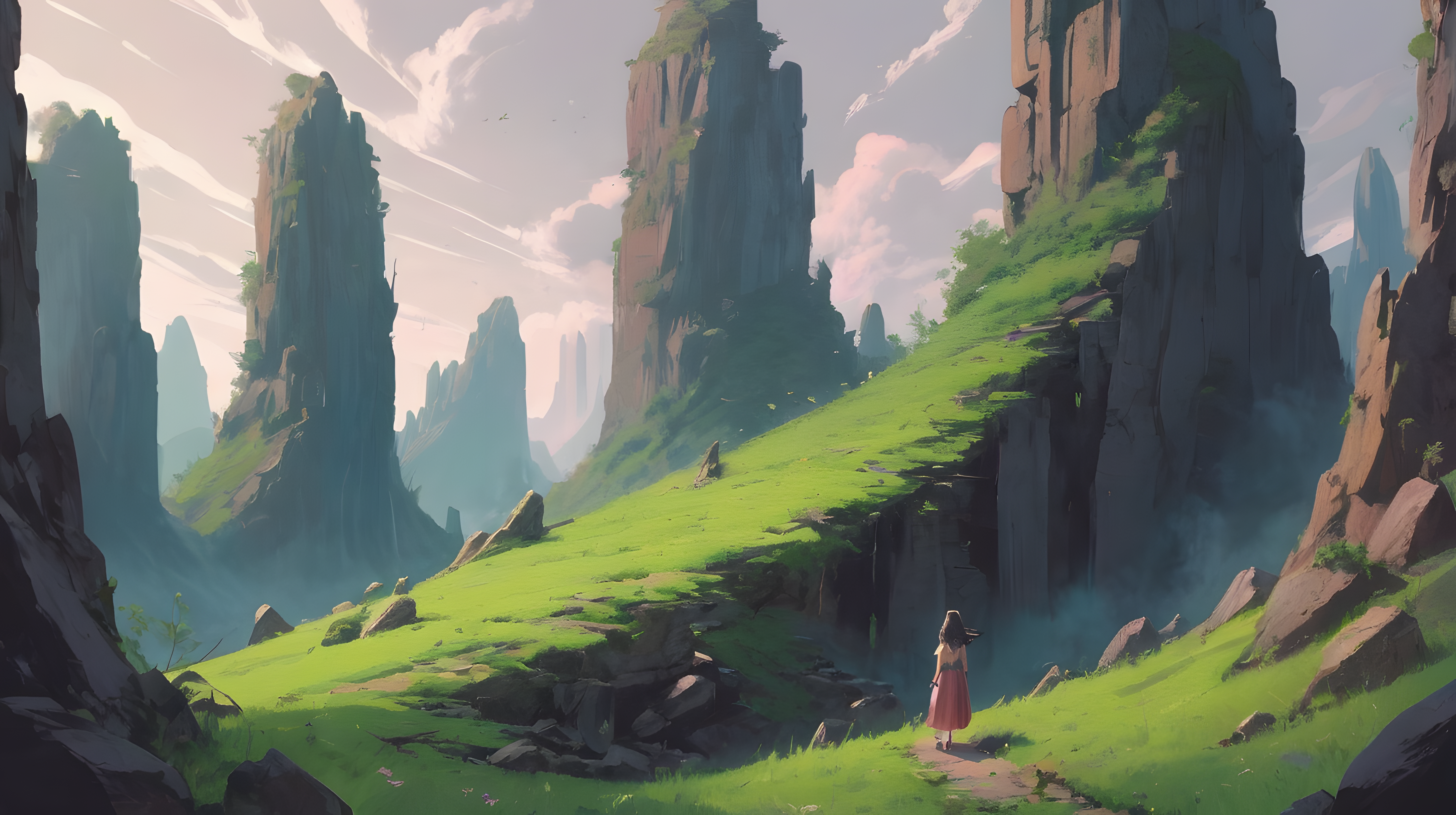 Free Download“Verdant Horizon” invites viewers into a tranquil landscape where rolling hills stretch endlessly beneath a blanket of overcast skies. The scene unfolds with a palette of rich greens and earthy tones, punctuated by rugged rocks and the occasional cluster of wildflowers. Soft, diffused light filters through the thick clouds, casting a gentle glow on the undulating terrain and enhancing the depth of the landscape. This digital artwork captures the essence of natural serenity and the quiet beauty of untouched wilderness, blending detailed textures with a subtle color palette that evokes a sense of calm and introspection. Perfect for enthusiasts of nature and landscape art, it offers a visual escape into a world where the timeless allure of rolling hills and atmospheric tranquility converge in a captivating digital narrative of natural splendor.